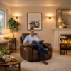 Designed for modern living, This Arm chair delivers both comfort and convenience. Wrapped in luxurious Queensbury Chocolate brown leather.
