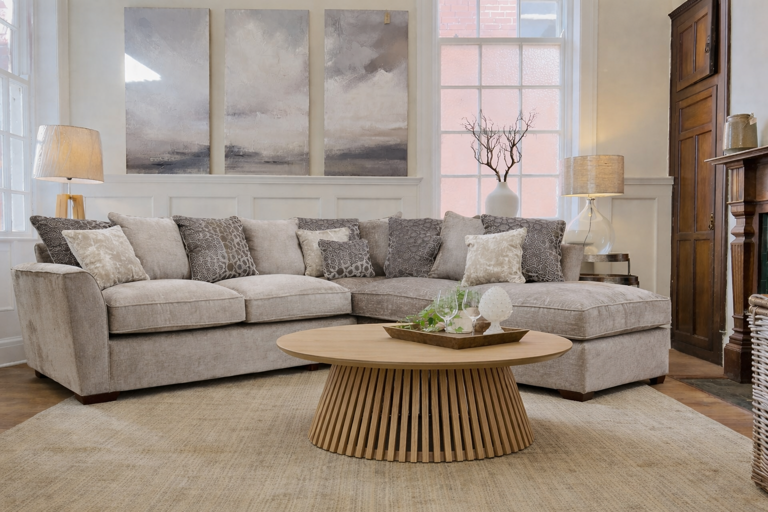 Milford scatter back corner sofa and Stool